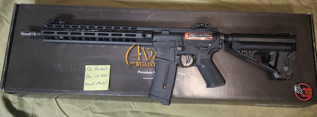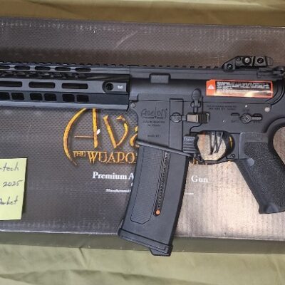 VFC Avalon Saber For more info or to purchase please visit: https://oxairtech.ca/product/vfc-avalon-saber-performance-build-brushless-perun-qrs/ upgraded with: BCA Aluminum Cylinder Head with Sorbo Pad BCA CNC Aluminum Air Nozzle Lonex ported Cylinder Lonex POM Piston SHS full metal rack piston Guarder Enhanced Tappet Plate Upgraded tappet spring Solink 35K Brushless Motor Perun V2 Hybrid Maple Leaf 270mm 6.02 tight bore barrel Maple Leaf MR Hop Bucking Maple Leaf Omega Nub VFC QRS grip and stock Comes with: 1 PTS EPM1 240rd MidCap BCA 11.1V Lipo Battery and Charger 1 Bag of BLS .32 Biodegradable BB's $1,330 plus applicable Taxes Shipping $25 Canada Post